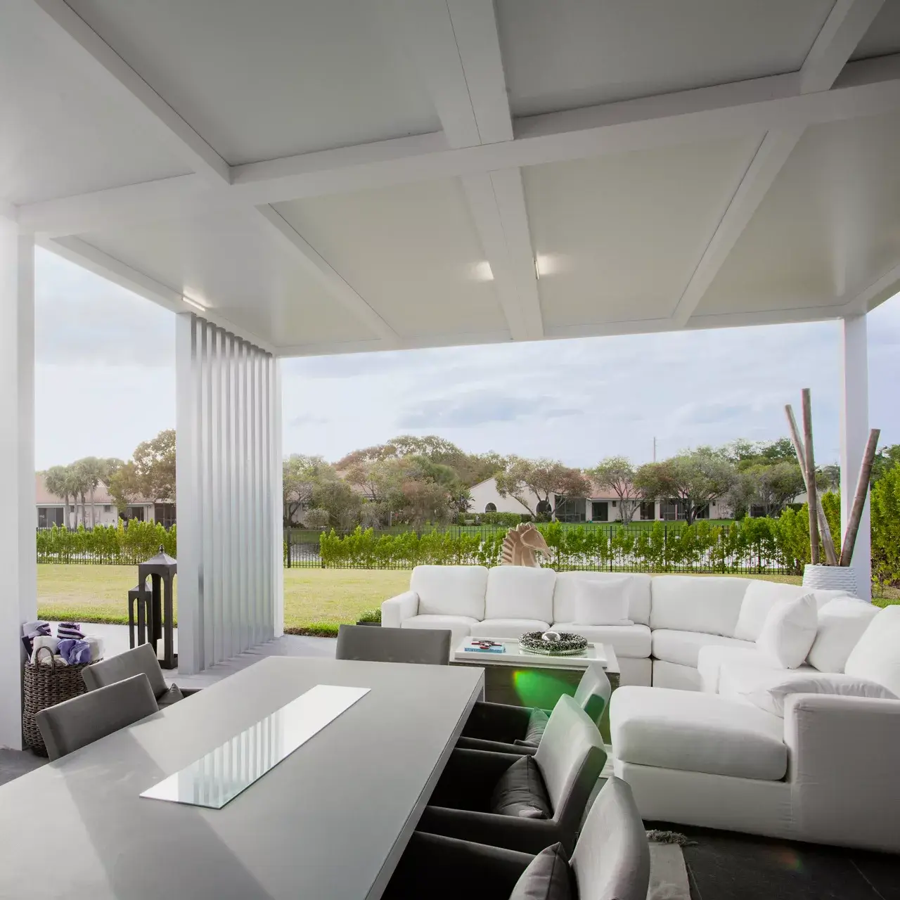 A classic with a contemporary twist. The R-Breeze™ offers a timeless look with partial shade. Its fixed louvers provide a sleek, streamlined appearance.