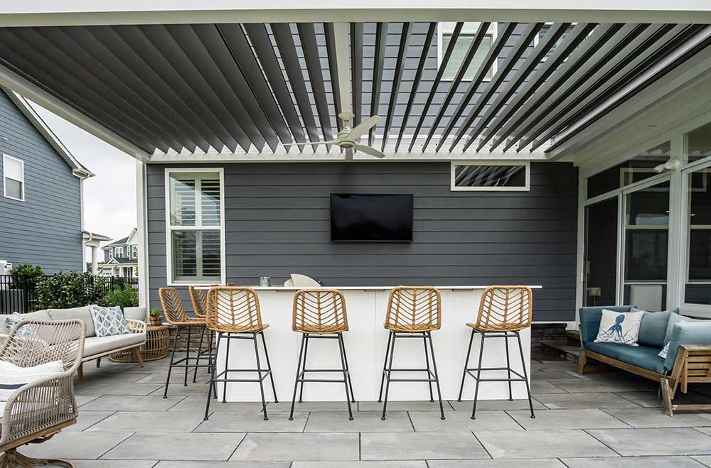 Designed to withstand the Long Island climate, the R-BLADE™ motorized louvered roof pergola offers unparalleled custom comfort and style. With many options and features available, you can create a personalized outdoor environment that complements your home’s architecture.